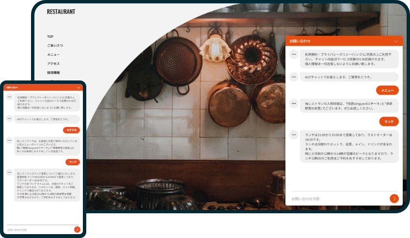 Webサイトに設置するだけで、24時間365日、問い合わせ対応を自動化。スタッフの業務負担を減らしながら、対応品質の安定と顧客満足度の向上を同時に実現します。