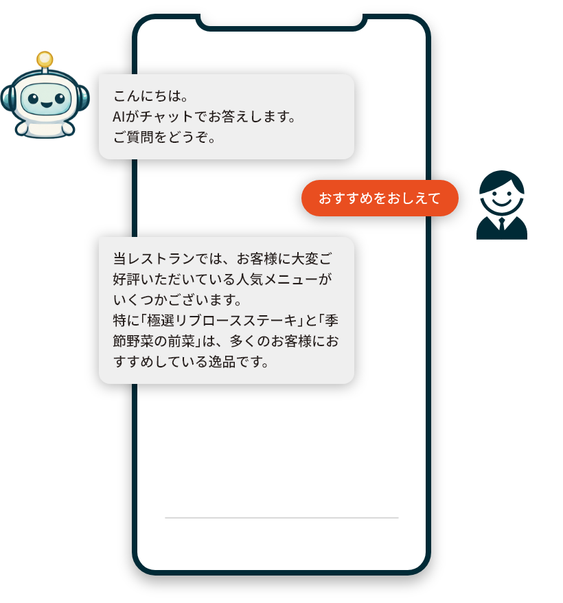 本サービスはよくある質問への自動対応から、少し複雑な問い合わせへの柔軟な対応までをカバーする、ハイブリッド型のAIチャットボットです。